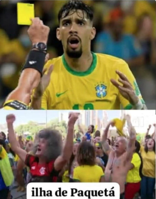The mere accusation was enough for memes in Brazil to start popping up. The one that exploded was a split screen showing what happens on “Paquetá Island”—a nod to the actual Paquetá Island located in Rio de Janeiro state—when he gets a yellow card. The meme uses footage of Brazilian crowds celebrating World Cup goals, you can imagine the insanity, portraying them as the island’s population celebrating his yellow card, which meant big payouts for them. Look it up, it’s wild.